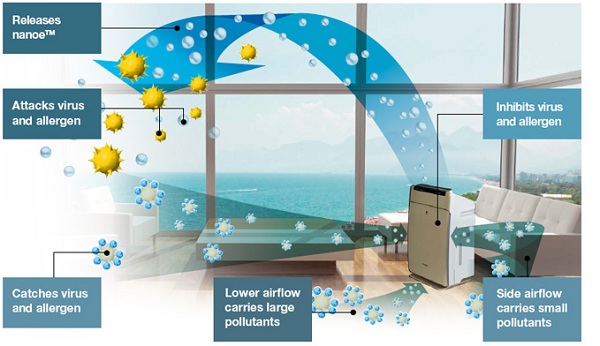 Cơ cấu hoạt động máy lọc không khí sạch với ion nanoe