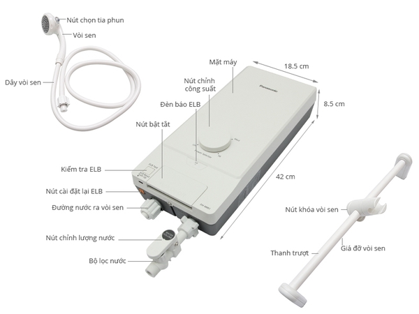 - Máy nước nóng trực tiếp không có bơm trợ lực tích hợp.